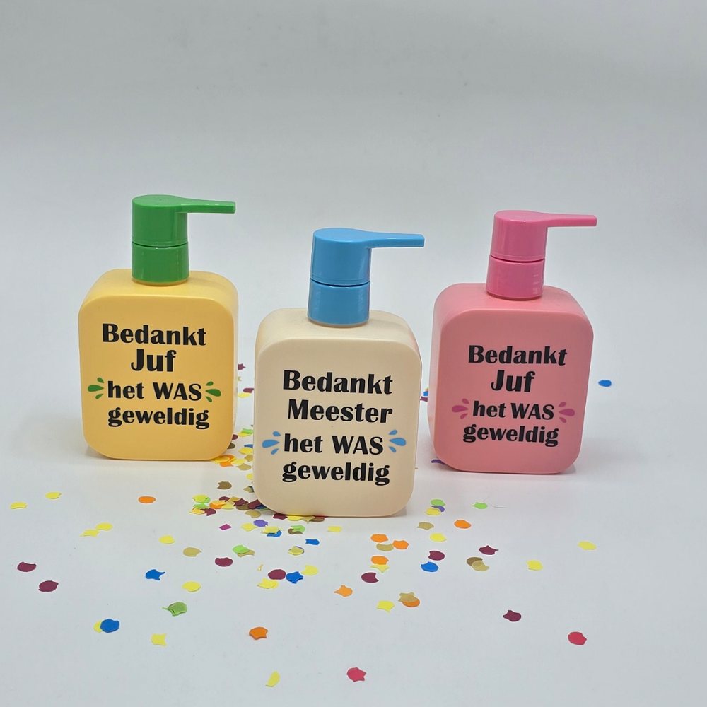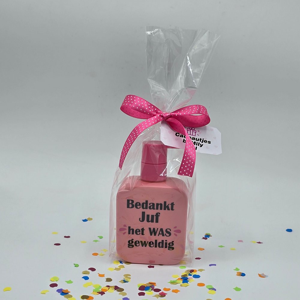 Verfrissend en heerlijk ruikend cadeau voor de juf of meester. Er zijn 3 verschillende kleuren roze, geel en licht beige.